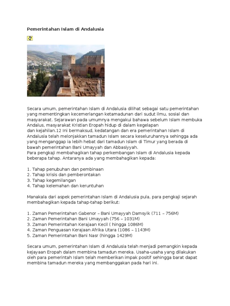Di bawah pemerintahan rumawi antara 210 hingga 206 sm, andalusia telah menjadi tempat kelahiran kerajaan trajan dan theodosius i. Seminar tamadun 2012 at marbawy hall, faculty of islamic civilization, universiti. Sekitar abad ke 6 dan ke 7 masihi turut sama. • hampir 800 tahun di bawah pemerintahan islam, andalus telah menjadi satu sumber tamadun kepada dunia eropah. Sejarah berkaitan ajaran islam yang diperturunkan melalui nabi muhammad saw.