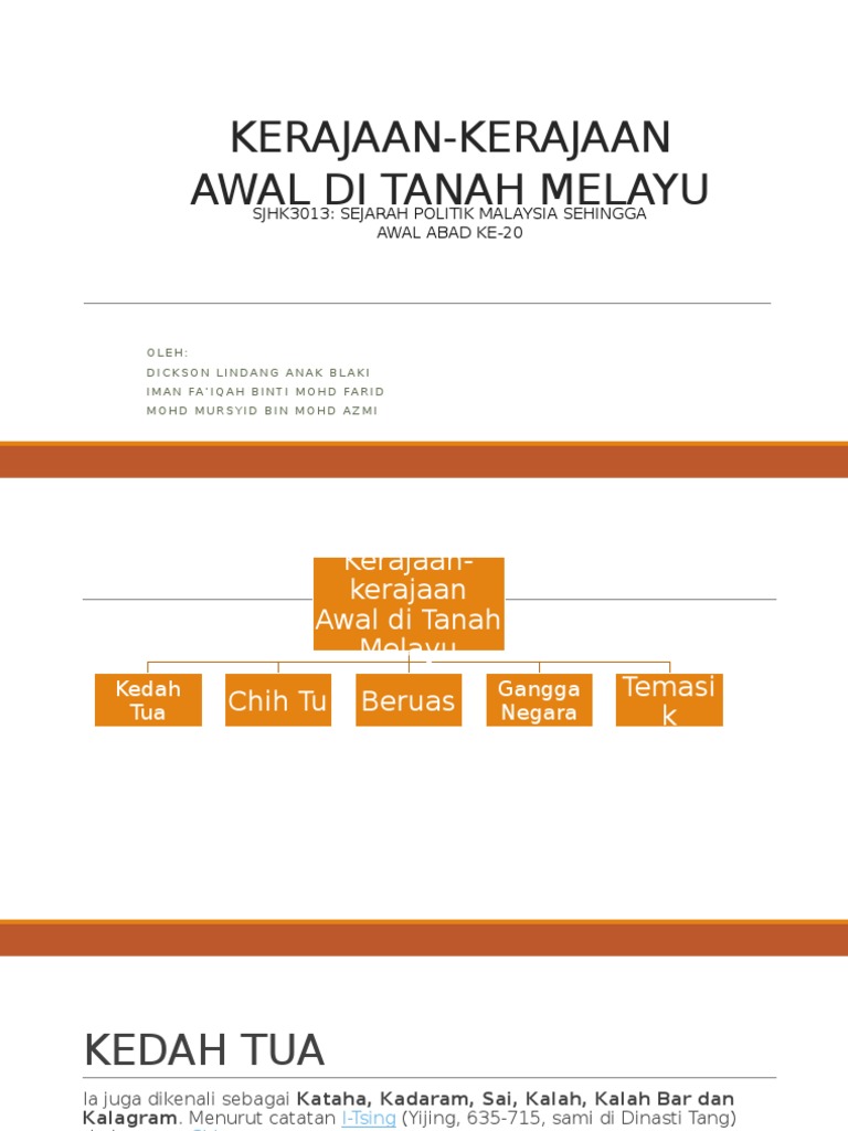 Kerajaan awal di tanah melayu. Check spelling or type a new query. Maybe you would like to learn more about one of these? We did not find results for: